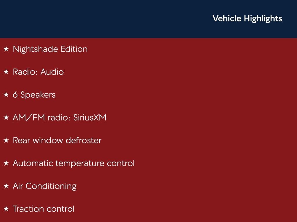 Certified. Ice Cap SE Nightshade FWD CVT 2.0L I4 DOHC 16V Back Up Camera, Bluetooth®, 4-Wheel Disc Brakes, 6 Speakers, ABS brakes, Air Conditioning, AM/FM radio: SiriusXM, Apple CarPlay/Android Auto, Auto High-beam Headlights, Automatic temperature control, Brake assist, Dual front impact airbags, Dual front side impact airbags, Electronic Stability Control, Emergency communication system: Safety Connect with 1-year trial, Exterior Parking Camera Rear, Four wheel independent suspension, Front anti-roll bar, Front Bucket Seats, Fully automatic headlights, Heated door mirrors, Knee airbag, Low tire pressure warning, Nightshade Edition, Occupant sensing airbag, Overhead airbag, Passenger door bin, Power door mirrors, Premium Fabric Seat Trim, Radio: Audio, Rear anti-roll bar, Rear side impact airbag, Rear window defroster, Remote keyless entry, Security system, Speed control, Split folding rear seat, Steering wheel mounted audio controls, Telescoping steering wheel, Tilt steering wheel, Traction control, Variably intermittent wipers, Wheels: 18 Black Painted Alloy.
