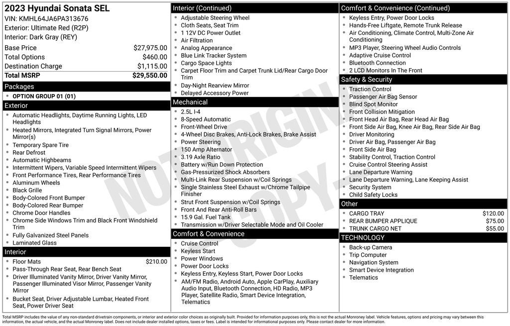 - Vehicle Name: Hyundai Sonata