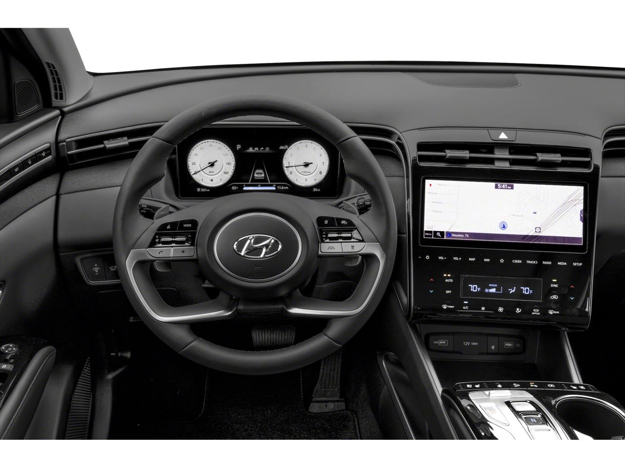 - Radio: Bose Premium w/AM/FM/HD/SiriusXM Audio System -inc: 10.25" color touchscreen w/onboard navigation and traffic flow including incident data via HD Radio (HERE) (AVN 5.0), 8 speakers (1 twiddler on center of instrument panel, 2 tweeters, 2 front door, 2 rear door, 1 woofer on rear quarter panel), digital 8 channel amp w/custom equalization, digital signal processing and dynamic speed compensation, Bluelink connected car system, Bluetooth® w/voice recognition, wired Apple CarPlay and Android Auto and USB connectivity