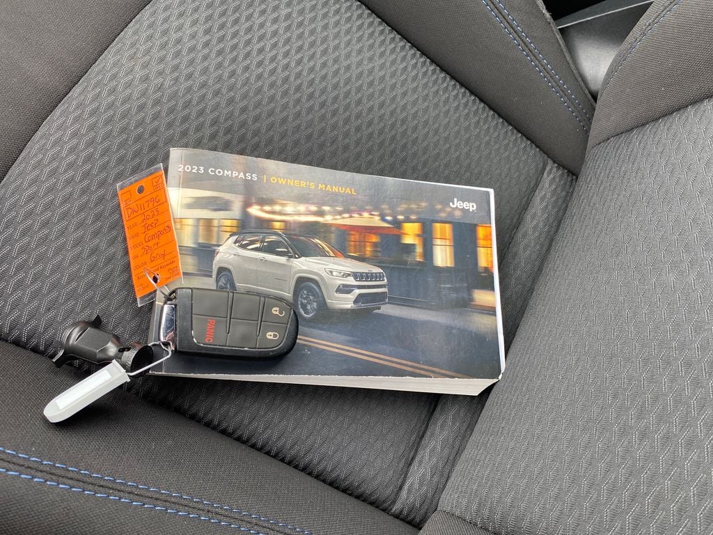 New Price! Sting-Gray Clearcoat 2023 Jeep Compass Sport 4WD 8-Speed Automatic 2.0L I4 DOHC 4WD, 4-Wheel Disc Brakes, 6 Speakers, ABS brakes, Air Conditioning, Alloy wheels, Brake assist, Cloth Low-Back Bucket Seats, Compass, Delay-off headlights, Dual front impact airbags, Dual front side impact airbags, Electronic Stability Control, Four wheel independent suspension, Front anti-roll bar, Front Bucket Seats, Front Center Armrest w/Storage, Fully automatic headlights, Heated door mirrors, Knee airbag, Low tire pressure warning, Occupant sensing airbag, Overhead airbag, Panic alarm, ParkView Rear Back-Up Camera, Power door mirrors, Power steering, Power windows, Quick Order Package 29A, Radio: Uconnect 5 w/10.1 Display, Rear anti-roll bar, Rear window defroster, Remote keyless entry, Security system, Split folding rear seat, Spoiler, Steering wheel mounted audio controls, Traction control.