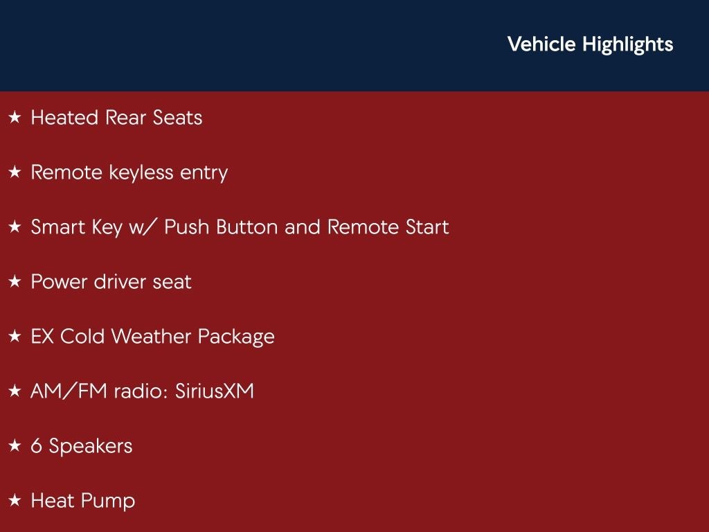 Runway Red EX FWD 6-Speed Dual Clutch 1.6L I4 DGI Hybrid DOHC 16V LEV3-SULEV30 Back Up Camera, Bluetooth®, Clean History Report, a Clean, One Owner Carfax, 1.6L I4 DGI Hybrid DOHC 16V LEV3-SULEV30, 4-Wheel Disc Brakes, 4.438 Axle Ratio, 6 Speakers, ABS brakes, AM/FM radio: SiriusXM, Apple CarPlay & Android Auto, Auto High-beam Headlights, Automatic temperature control, Brake assist, Dual front impact airbags, Dual front side impact airbags, Electronic Stability Control, Emergency communication system: Kia Connect (includes 1 year free trial), EX Cold Weather Package, Exterior Parking Camera Rear, Four wheel independent suspension, Front anti-roll bar, Front dual zone A/C, Fully automatic headlights, Heat Pump, Heated door mirrors, Heated Front Bucket Seats, Heated Rear Seats, Heated Steering Wheel, Knee airbag, Low tire pressure warning, Navigation System, Occupant sensing airbag, Overhead airbag, Passenger door bin, Power door mirrors, Power driver seat, Rain sensing wipers, Rear anti-roll bar, Rear window defroster, Rear window wiper, Remote keyless entry, Security system, Smart Key w/ Push Button and Remote Start, Speed control, Speed-sensing steering, Split folding rear seat, Telescoping steering wheel, Tilt steering wheel, Traction control, Variably intermittent wipers, Wheels: 16 Alloy Aero.
