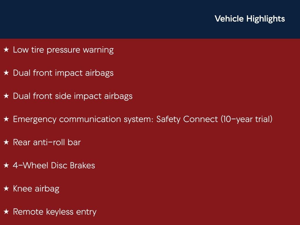 - Emergency SOS Capable Safety Connect (10-year trial) vehicle integrated emergency SOS system