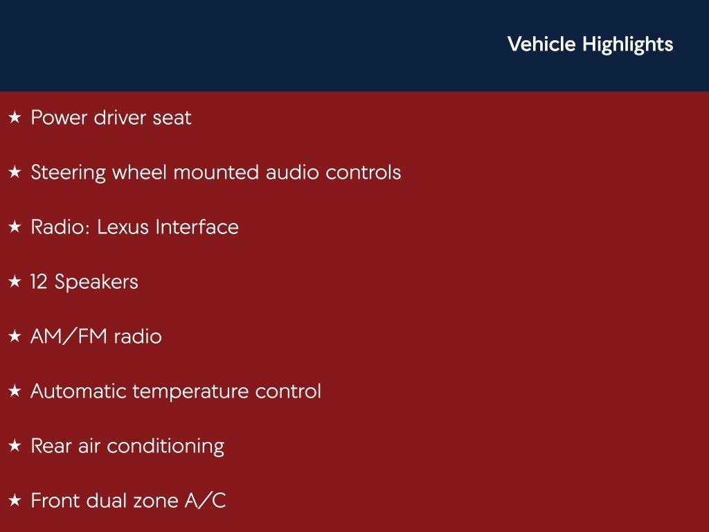 Caviar 350 AWD 8-Speed Automatic 2.4L I4 Back Up Camera, Bluetooth®, Clean History Report, a Clean, One Owner Carfax, 12 Speakers, 20 Wheels, 4-Wheel Disc Brakes, ABS brakes, AM/FM radio, Auto High-beam Headlights, Auto tilt-away steering wheel, Auto-dimming Rear-View mirror, Automatic temperature control, Brake assist, Dual front impact airbags, Dual front side impact airbags, Electronic Stability Control, Emergency communication system: Safety Connect (10-year trial), Exterior Parking Camera Rear, Four wheel independent suspension, Front anti-roll bar, Front dual zone A/C, Front fog lights, Fully automatic headlights, Garage door transmitter: HomeLink, Heated door mirrors, Heated Front Seats, Knee airbag, Low tire pressure warning, Occupant sensing airbag, Overhead airbag, Passenger door bin, Power door mirrors, Power driver seat, Power Liftgate, Power passenger seat, Radio: Lexus Interface, Rain sensing wipers, Rear air conditioning, Rear anti-roll bar, Rear Parking Sensors, Rear window defroster, Rear window wiper, Reclining 3rd row seat, Remote keyless entry, Security system, Speed control, Speed-sensing steering, Steering wheel mounted audio controls, Telescoping steering wheel, Tilt steering wheel, Traction control, Variably intermittent wipers, Wireless Apple CarPlay/Wireless Android Auto.