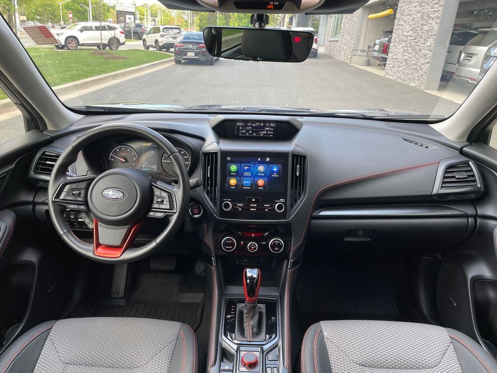 Step inside the Forester Sport and you'll be greeted by a spacious and well-appointed cabin that seamlessly blends style and functionality. The sport cloth upholstery, heated front seats, and leather-wrapped steering wheel create a comfortable and inviting atmosphere, while the 8-inch Subaru STARLINK multimedia system with Harman/Kardon audio and smartphone integration keeps you connected and entertained.