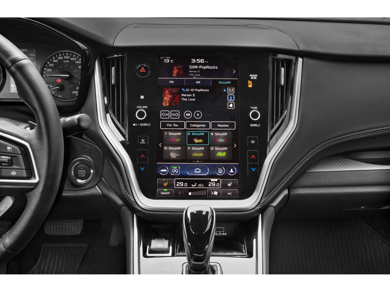 - Radio: Subaru STARLINK 11.6" Multimedia Plus Sys -inc: AM/FM stereo, HD Radio, valet mode, multi-touch gesture high resolution display screen, voice activated controls, Bluetooth® audio streaming and hands-free phone connectivity w/SMS text messaging (refer to subaru.com for cell phone compatibility), Near Field Communication (NFC), iPod control capability, SiriusXM w/360L (4 months free platinum trial/subscription required after; available after launch, possibly in June 2023), SiriusXM Travel Link (4 months free trial/subscription required after), smartphone integration w/full screen view and wireless connection for Android Auto, Apple CarPlay and STARLINK cloud applications (refer to subaru.com for app availability), USB and Over The Air (OTA) audio system update, audio/Bluetooth® steering wheel control switches, 6 speakers, 3.5mm illuminated front auxiliary input jack and illuminated front and rear USB-A and USB-C input/charge ports