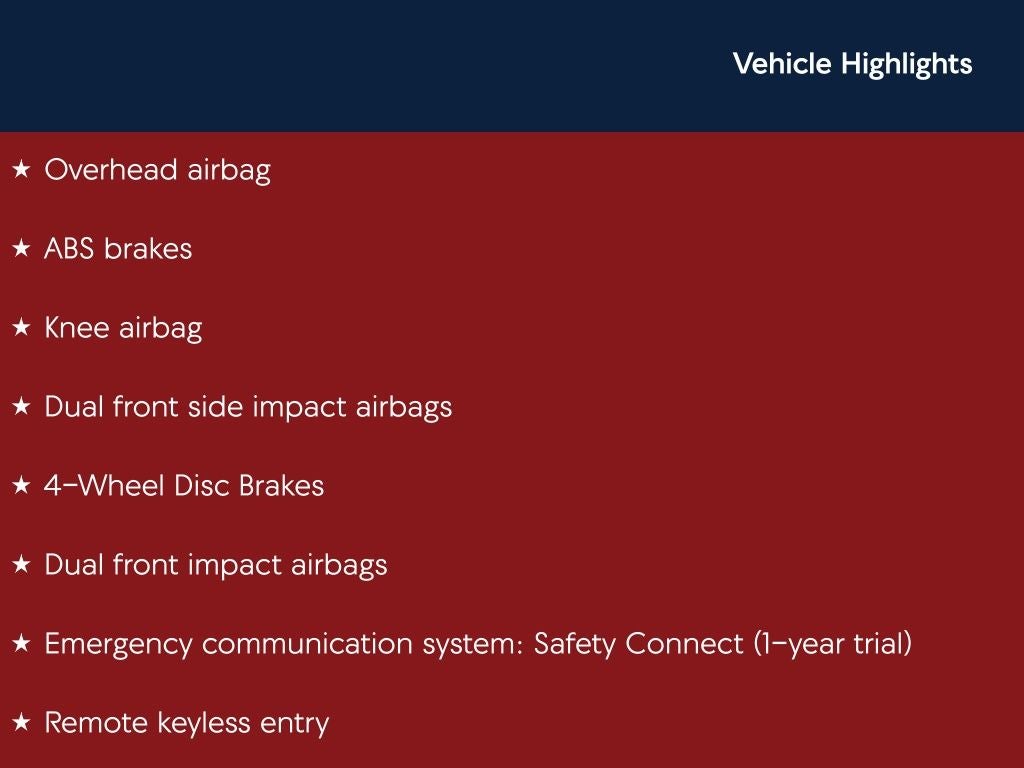 - Emergency SOS Capable Safety Connect (1-year trial) vehicle integrated emergency SOS system
