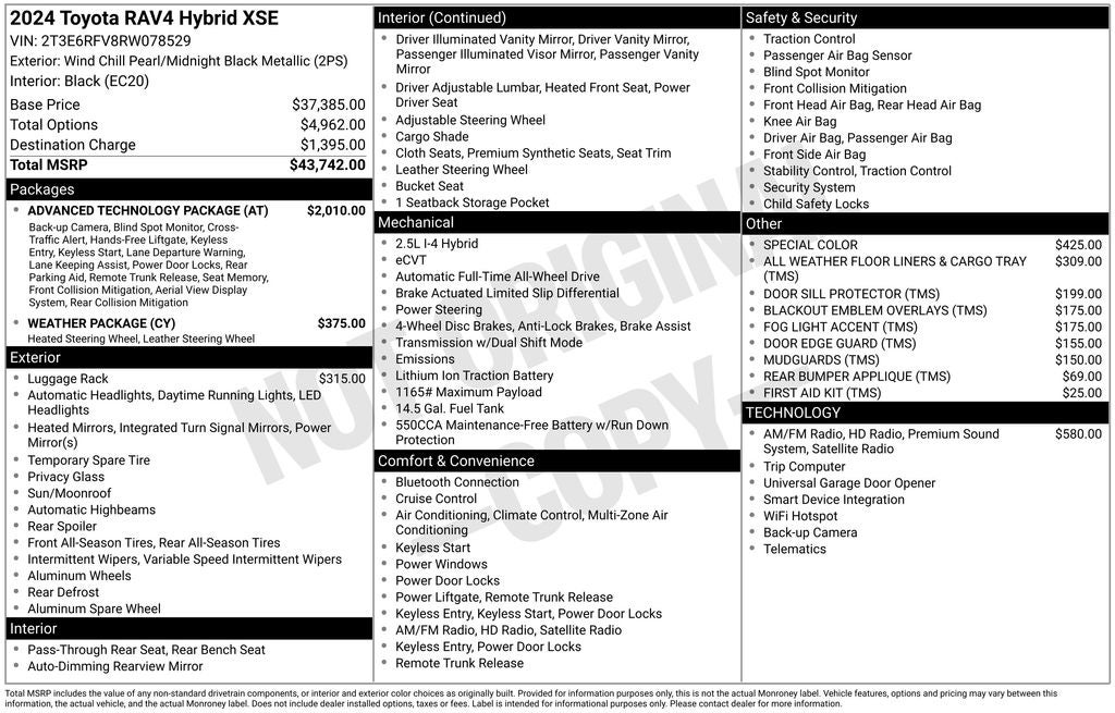 Wind Chill Pearl/Midnight Black Metallic XSE AWD eCVT 2.5L 4-Cylinder Back Up Camera, Bluetooth®, 2.5L 4-Cylinder, 12.3 Multi Information Display, 4-Wheel Disc Brakes, 6 Speakers, ABS brakes, Advanced Technology Package, AM/FM radio: SiriusXM, Auto High-beam Headlights, Automatic temperature control, Axle Ratio: TBD, Blind Spot Monitor, Brake assist, Driver Seat w/2-Position Memory Function, Dual front impact airbags, Dual front side impact airbags, Electronic Stability Control, Emergency communication system: Safety Connect (1-year trial), Exterior Parking Camera Rear, Four wheel independent suspension, Front & Rear Parking Assist w/Automated Braking, Front anti-roll bar, Front Bucket Seats, Front dual zone A/C, Fully automatic headlights, Heated 3-Spoke Leather Steering Wheel, Heated door mirrors, Heated Front Seats, Intelligent Clearance Sonar (ICS), Knee airbag, Low tire pressure warning, Occupant sensing airbag, Overhead airbag, Panic alarm, Panoramic View Monitor, Passenger door bin, Power door mirrors, Power driver seat, Power Liftgate, Power moonroof, Qi-Compatible Wireless Smartphone Charging, Rear anti-roll bar, Rear Bumper Applique (TMS), Rear window defroster, Rear window wiper, Remote keyless entry, Security system, Smart Key System w/Push Button Start, Speed control, Speed-sensing steering, Split folding rear seat, Steering wheel mounted audio controls, Telescoping steering wheel, Tilt steering wheel, Traction control, Variably intermittent wipers, Weather Package, Wheels: 18 x 7.0J Black-Painted Aluminum Alloy.